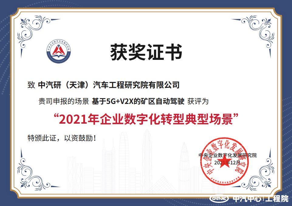 為貫徹落實(shí)黨中央、國務(wù)院關(guān)于加快數(shù)字化發(fā)展的決策部署,推進(jìn)企業(yè)數(shù)字化轉(zhuǎn)型走深走實(shí),中央企業(yè)數(shù)字化發(fā)展研究院(以下簡稱“研究院”),日前啟動(dòng)了2021年企業(yè)數(shù)字化轉(zhuǎn)型場景征集工作,共評出103個(gè)典型場景,占申報(bào)總數(shù)的25%,其中工程院3項(xiàng)申報(bào)場景入選,分別為新型底盤開發(fā)部的“智能網(wǎng)聯(lián)汽車園區(qū)接駁示范運(yùn)行系統(tǒng)”、“基于5G+V2X的礦區(qū)自動(dòng)駕駛”、風(fēng)洞中心的“汽車空氣動(dòng)力學(xué)超低風(fēng)阻數(shù)字開發(fā)平臺應(yīng)用”。
