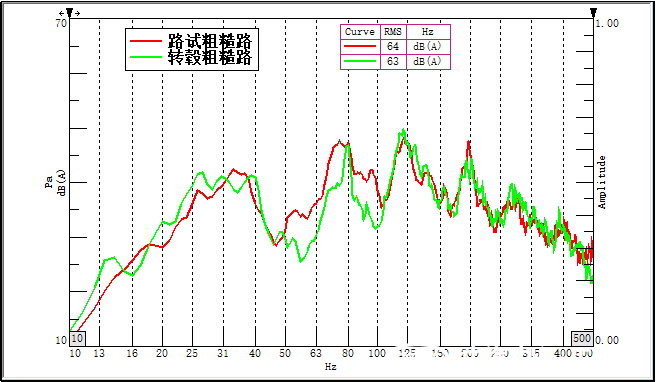 路面一致性良好。粗糙砂石轂面構(gòu)造深度約3.5mm,粒徑6~8mm,測試結(jié)果可完美復(fù)現(xiàn)實際路面噪聲,幅值、頻譜高度相似,并且在長時間、多次數(shù)的測試中表現(xiàn)出了良好的重復(fù)性。穩(wěn)定的路面激勵源對平臺車型的路噪性能研發(fā)驗證工作也有重要意義。