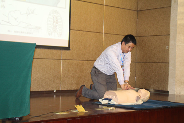 培訓(xùn)內(nèi)容主要包括心肺復(fù)蘇、創(chuàng)傷救護(hù)兩方面內(nèi)容。培訓(xùn)以理論與實(shí)際相結(jié)合的方式對員工進(jìn)行講解,課后老師又以實(shí)際操作的考核方式,為每一位進(jìn)行實(shí)操的學(xué)員進(jìn)行現(xiàn)場指導(dǎo),確保了學(xué)員得以掌握和吸收。